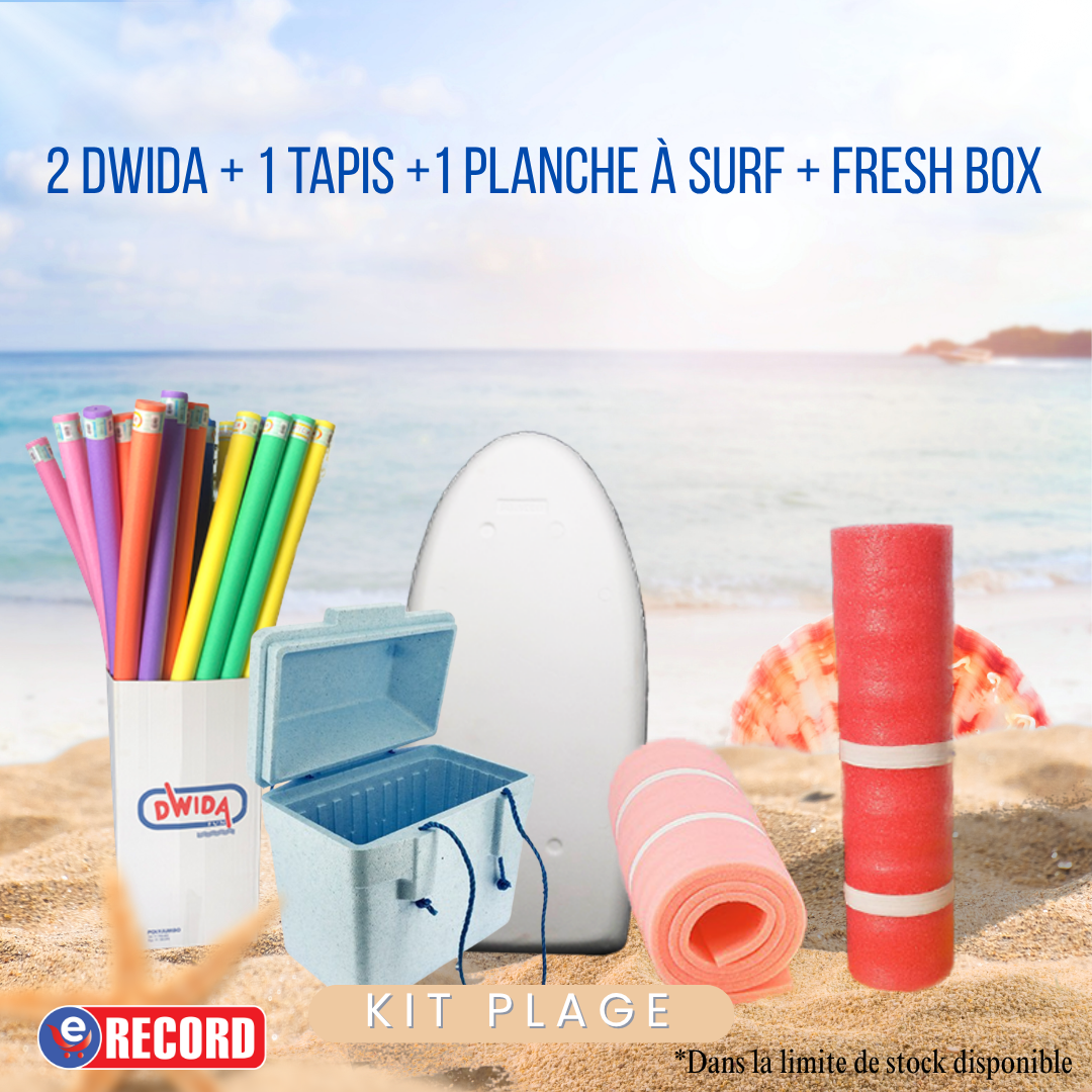 🎉🌞 Tout ce qu’il vous faut pour profiter pleinement de l’été ! Le Pack Évasion d’Été comprend une glacière isotherme, deux snacks Dwida Fun, un tapis de plage et une planche de surf. Pratique, fun et en quantité limitée !🏖️