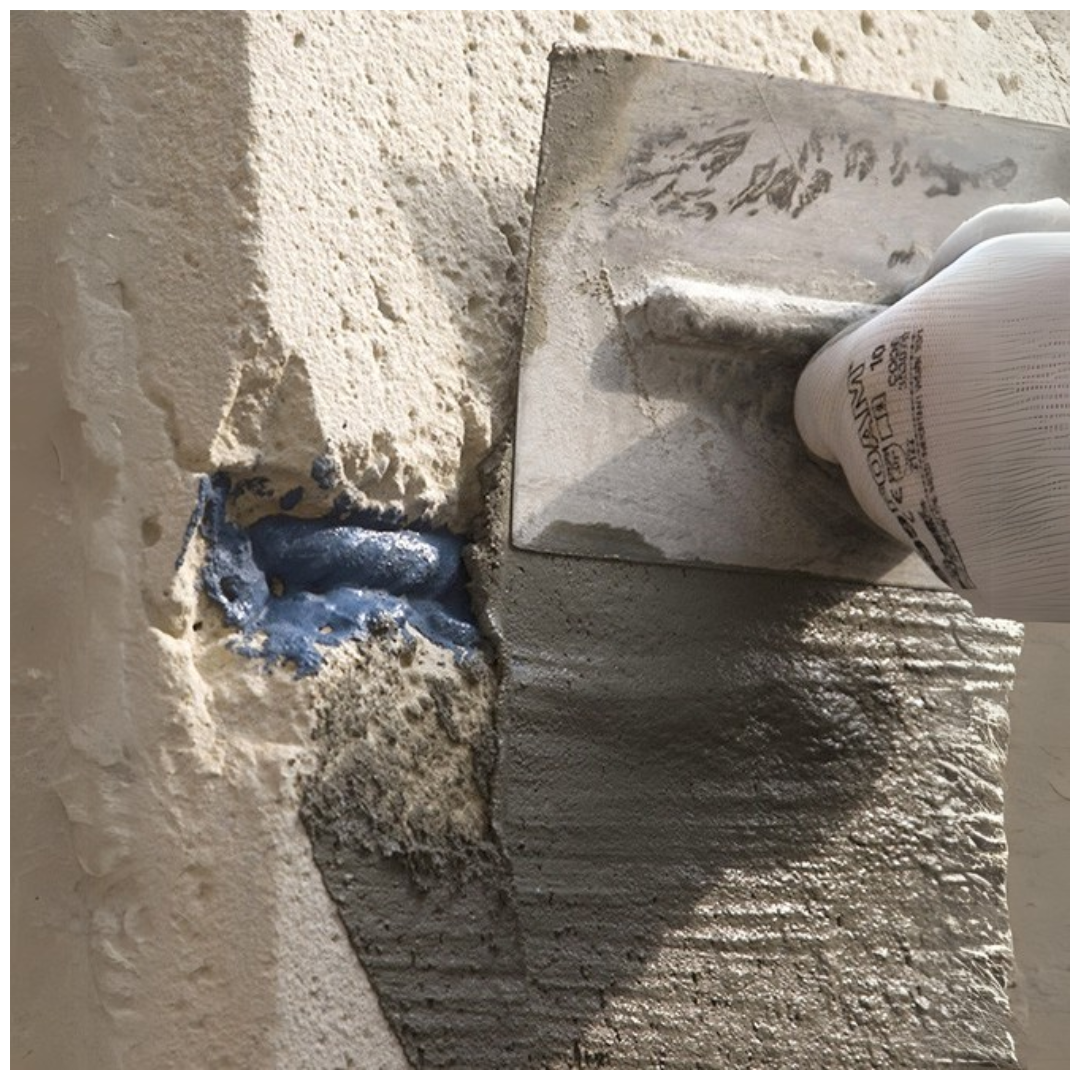 Lissage des défauts de surface, tels que nids de graviers, nouveaux joints de coulée, trous créés par les entretoises de coffrage, tiges apparentes, etc.