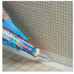 Jointoiement entre le carrelage et les appareils sanitaires (cuisines, salles de bains, douches) avec des coloris coordonnés à ceux des joints.